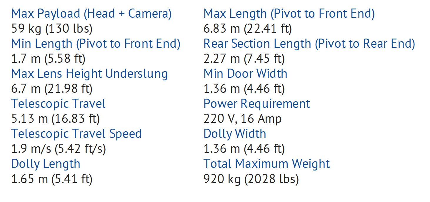 The SuperTechno 22 can handle any remote head and any camera package with ease.doorways, and more. For TV studio, AR use the standard Technocrane 2