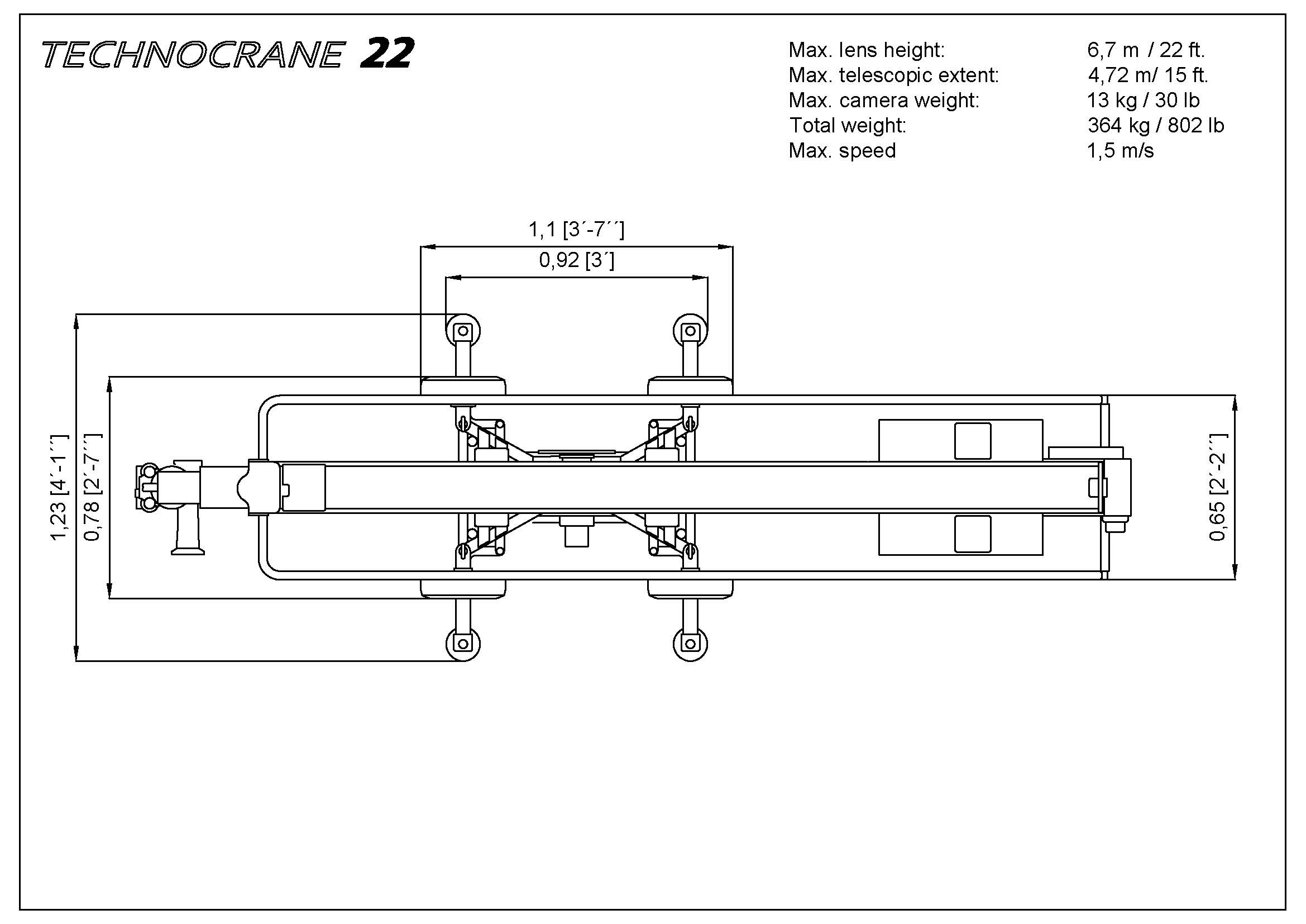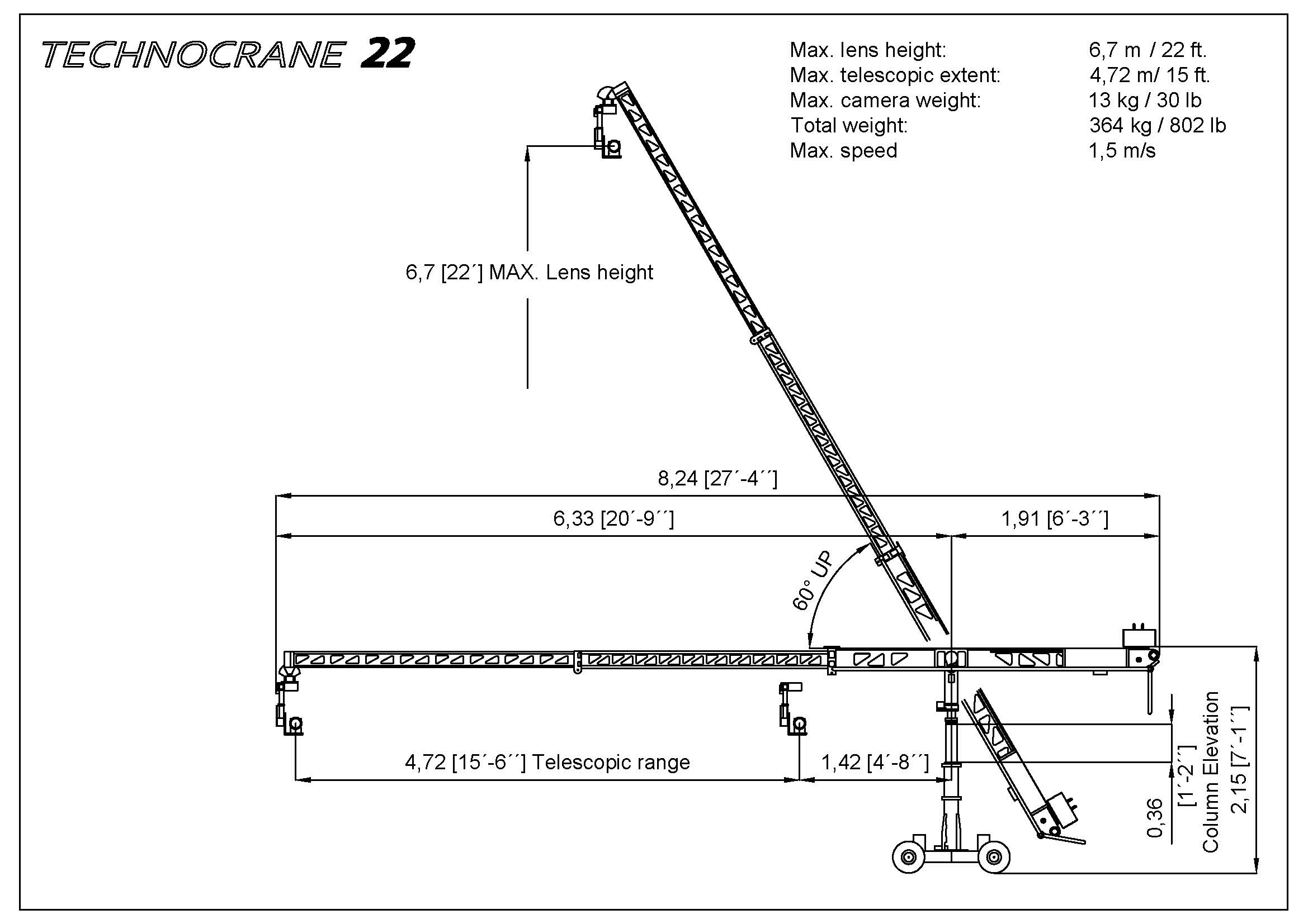 The TechnoCrane 22 is a great, compact solution for your tight spaces, light cameras, small studios, standard doorways, and more.