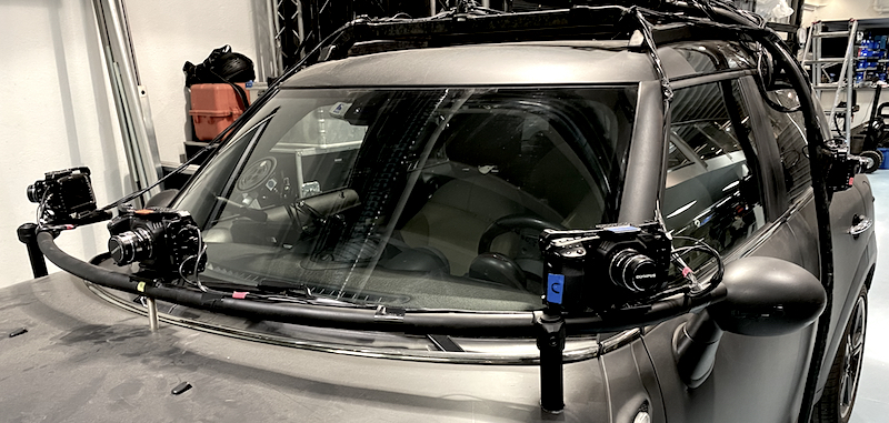 - By using a hardmounted rig we have a standard set-up og 6 Blackmagic Pocket Cinema cameraes. Raw or ProRes. Its possible to add additional cameraes as well as a 360 small camera on the roof for windshield reflections. The system was used on the feature Burning Asphalt 3 on all their studio interiour car scenes. The plates material was shot in the westcoast of Norway and in Germany and all interiour car scenes then later shot in a greenscreen studio in Norway. Using background projection or LED screens in studio for the plates is also a possibility.