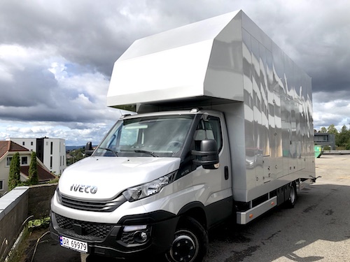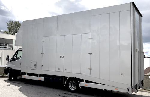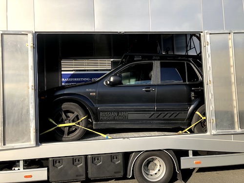 Our standard transport for the U Crane (Russian arm). With the Mercedes AMG vehicle inside it still weights under 7,5 tonn and travels under normal truck restrictions in Europe.